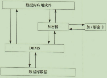 数据库的数据加密以后,必须保留数据库管理的一切功能。为了实现数据库的功能,通过加密桥的中间过渡(相当于建立一套新的用于操作加密数据的SQL语言),实现对加密字段数据的操作。DBMS在系统中只负责非密数据的存取和操作,对于加密字段数据的操作完全通过加密桥完成。如图所示。