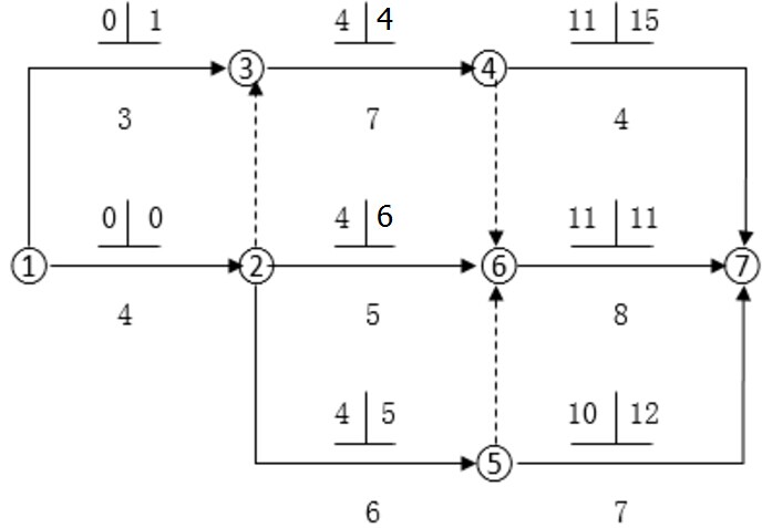 某工程双代号网络计划如下图所示,图中已标出各项工作的最早开始时间和最迟开始时间。该计划表明( )。