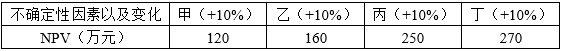 某投资方案的净现值NPV为200万元,假定各不确定性因素分别变化﹢10%,重新计算得到该方案的NPV见下表,则最敏感因素为