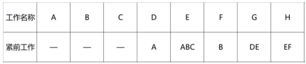 下列图表为工作和紧前工作内容,用双代号网络图绘制,至少( )虚箭线。