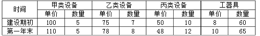 某工程在建设期初雨季和建设期第一年末实际发生的设备、工器具购置情况见下表。与建设期初相比,第一年末的设备、工器具价格指数为( )。