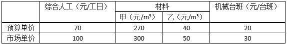 编制某工程施工图预算,套用预算定额后得到的人工、甲材料、乙材料、机械台班的消耗量分别为15工日、12m3、0.5m3、2台班,预算单价与市场单价见下表。措施费为直接工程费的7%。则用实物法计算的该工程的直接费为( )元。