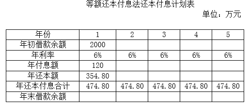 根据下列借款还本复习计划表中的数据,按照5年等额还本付息的方式,则计算得到的2年应还本额是( )万元。