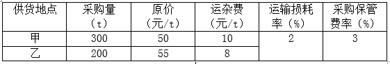 某材料自甲、乙两地采购,相关信息如下表所示,则其材料单价为( )元/t。