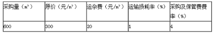 某工地商品混凝土从甲、乙两地采购,甲地采购量及材料单价分别为400m3、350元/m3