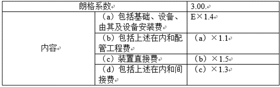 在国外某地建设一座化工厂,一直设备到达工地的费用(E)为3000万美元,该项目的朗格系数(K)及包含的内容如下表所示。则该