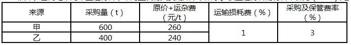 从甲、乙两地采购某工程材料,采购量及有关费用如下表所示。该工程材料的材料单价为( )元/t。(表中原价、运杂费均为不含税