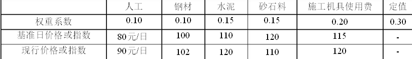 某施工合同约定采用价格指数及价格调整公式调整价格差额,调价因素及有关数据见下表。某月完成进度款为1500万元,则该月应当支