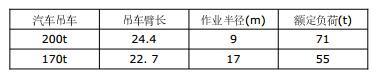 故采用一台170t或一台200t汽车吊均可以满足起吊燃气轮机的要求。