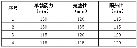 在标准耐火试验条件下对4组承重墙试件进行耐火极限测定,实验结果如下表所示,表中数据正确的试验序号是( )。