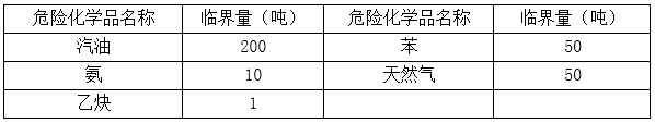 某化学品存储企业,分库存储不同的危险化学品,各库间距均超过600米。其存储的危险化学品临界量如下表。