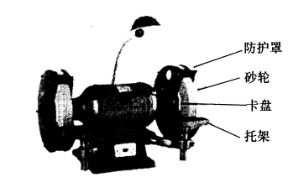 砂轮机是机械工厂最常用的机械设备之一,砂轮质脆易碎、转速高、使用频繁,容易发生伤人事故。某单位对下图所示砂轮机进行了一次例