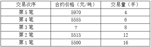 某期货投机者预期某商品期货合约价格将上升,决定采用金字塔式建仓策略,交易过程如下表所示。则该投机者第3笔交易可能的价格是(