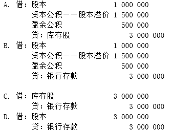 某股份有限公司股本为1 000万元(每股面值1元),资本公积(股本溢价)为150万元,盈余公积50万元。该公司以300万元价格回购本公司股票100万股并予以注销,不考虑其他因素,下列关于该公司注销库存股的会计处理正确的是( )。
