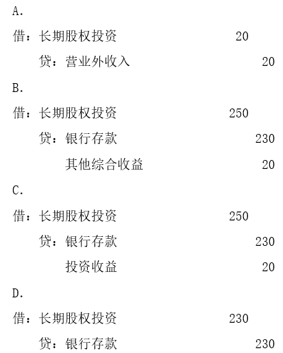 (答案中的金额单位用万元表示)根据期初资料和资料(1),下列各项中,关于甲公司对乙公司股权投资会计处理正确的是( )。 2023-11-02 22:28:19 初级会计实务 (答案中的金额单位用万元表示)根据期初资料和资料(1),下列各项中,关于甲公司对乙公司股权投资会计处理正确的是( )。A.AB.BC.CD.D正确答案是D 上一篇:根据期初资料和资料(2),下列各项中,甲公司以无形资产对丙公司投资会计处理表述正确的是( )。 下一篇:企业采用计划成本进行直接材料日常核算的,期末应将耗用的直接材料计划成本调整为实际成本。( )