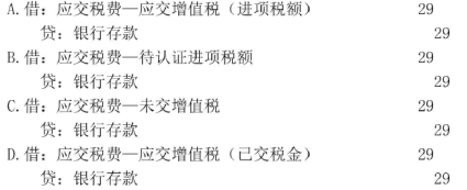 甲公司为增值税一般纳税人,2020年3月2日从境外购入一批原材料,以银行存款支付进口增值税29万元,当月已向海关申请稽核比对,则关于支付进口增值税的会计处理正确的是()