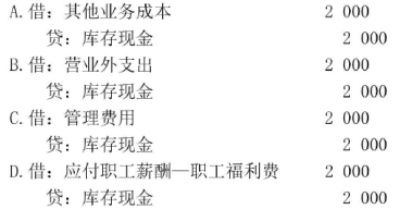 某企业以现金支付行政管理人员生活困难补助2000元,下列各项中,会计处理正确的是()