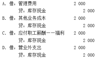 企业以现金支付行政管理人员生活困难补助2 000元,应做的账务处理是( )。