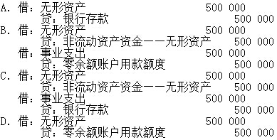 2014年6月,某事业单位使用财政项目补助资金购入一项专利权,价款为500 000元,以财政授权支付方式支付。下列相关会计