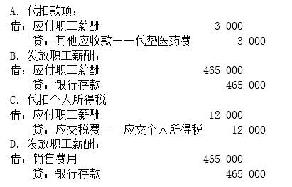 根据资料(2),下列各项中,该企业发放11月销售机构人员职工薪酬的会计处理正确的是( )。