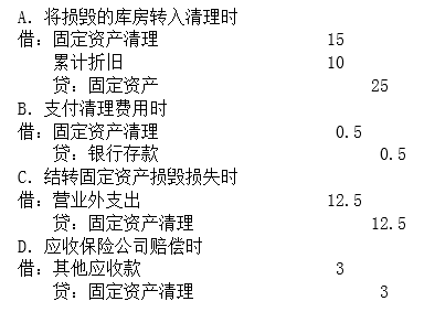 根据资料(2),下列各项中甲公司关于库房毁损的会计处理正确的是( )。