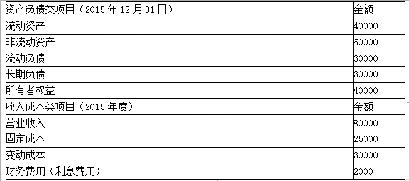 资料一:己公司2015年相关财务数据如表5所示。假设己公司成本性态不变,现有债务利息水平不变。