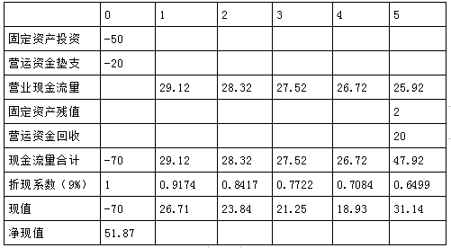 (2)编制甲方案投资项目现金流量表,并计算净现值;