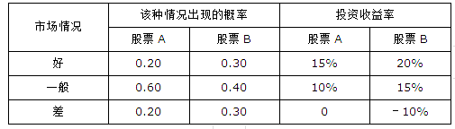 已知A、B两个股票的投资收益率及其概率分布情况如下表所示:
