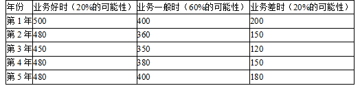 (2)由于国际货物运输业务受宏观经济形势的影响较大,甲公司预计货轮未来5年产生的净现金流量(假定使用寿命结束时处置货轮产生的净现金流量为零,有关现金流量均发生在年末)如下表所示。