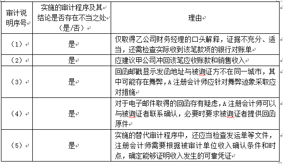 (2)回函直接寄回本所。回函显示该差异是由甲公司发货错误造成,财务经理解释,已于2020年1月10日重新安排发货。A注册会计师检查了2020年1月10日的发货凭证认为处理得当,无需实施进一步的审计程序。