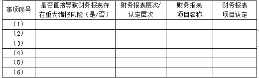 要求:针对上述每一种情况,分析并填列分别指出是否会直接导致财务报表存在重大错报风险。将答案填入下表的空格中。
