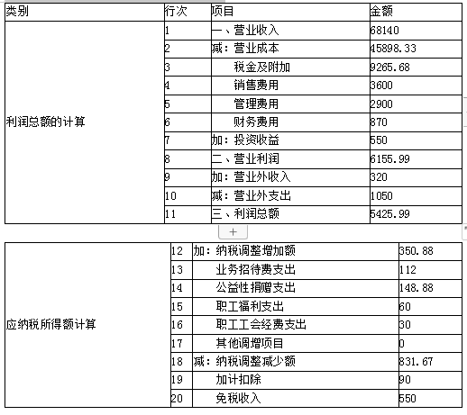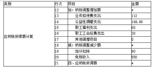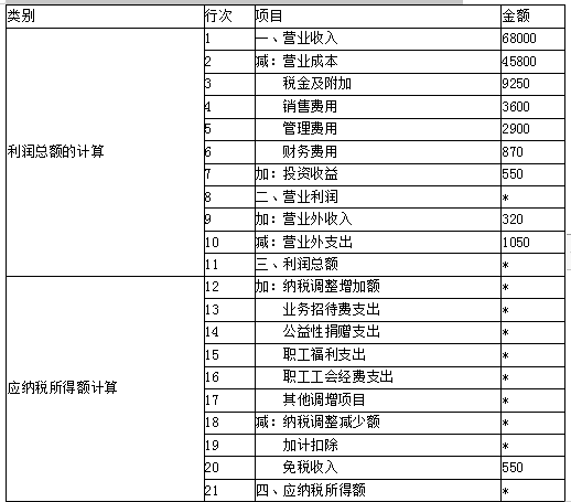 (1)填列答题卷给出的《企业所得税计算表》中带*号项目的金额。