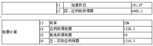 加速折旧纳税调减=200-8.33=191.67
