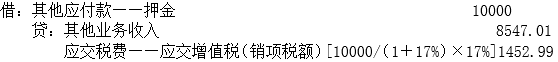 应交增值税(销项税额)=10000/(1+17%)×17%=1452.99(元)。