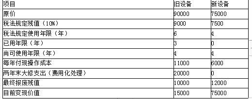 C公司有一台设备,购置于3年前,现在考虑是否需要更新。该公司所得税税率为25%,其他有关资料如下表所示(金额单位:元):