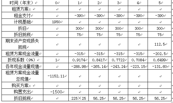租赁资产的计税基础=390×5=1950(万元)