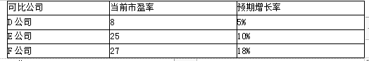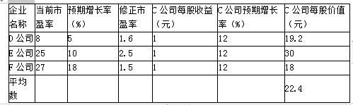C公司的每股收益是1元,其预期增长率是12%。为了评估该公司股票价值是否被低估,收集了以下3个可比公司的有关数据: