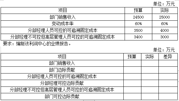 某集团下的A部门为利润中心。有关预算和实际资料如下表所示: