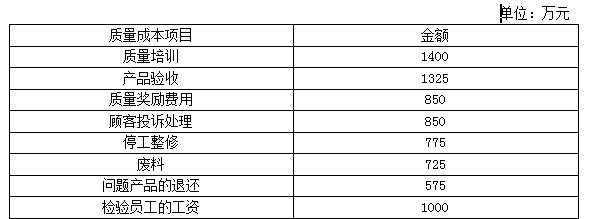 某公司经理人员想要了解各质量成本的重要性,收集了2019年各类质量成本,有关数据如下表所示: