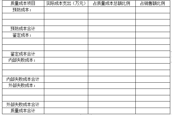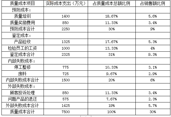 某公司经理人员想要了解各质量成本的重要性,收集了2019年各类质量成本,有关数据如下表所示: 已知2019年的销售收入为25000万元。 要求:编制质量成本报告。