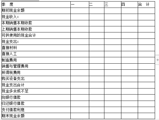 (3)所有销售均为赊销。应收账款期初余额为250万元,预计可以在第一季度收回。每个季度的销售有2/3在本季度内收到现金,另外1/3于下一个季度收回。