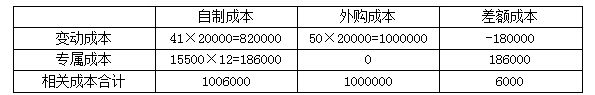 甲公司是一家汽车制造企业,生产汽车每年所需零部件20000个,可以自行生产,也可以向外部的零部件供应商采购。如果外购的话,外购成本每个50元。如果自制的话,目前企业已有的生产车间有能力制造这种零部件,自制的单位相关成本资料如下表所示: