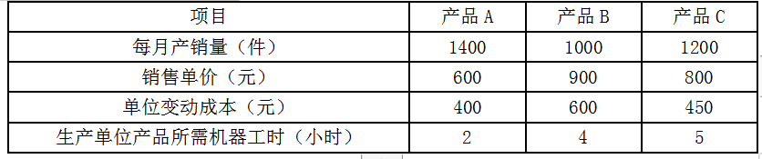 (2)计算调整生产结构后A、B、C三种产品的产量、边际贡献总额、甲公司每月的税前利润增加额。
