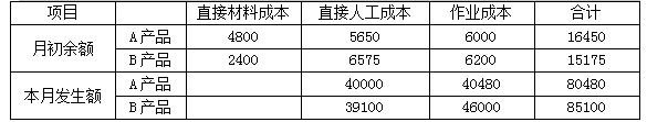 (2)计算填列第二车间A和B产品的成本计算单。
