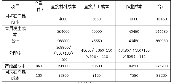第二车间试行作业成本法的相关资料略。