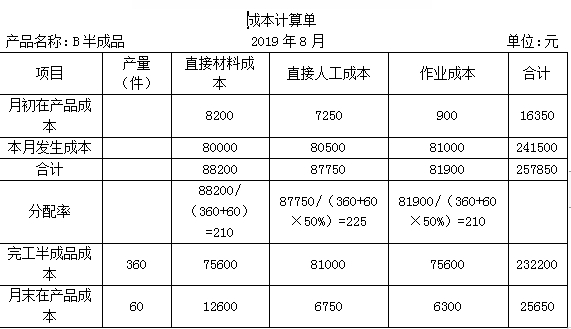 产品名称:B半成品 2019年8月 单位:元