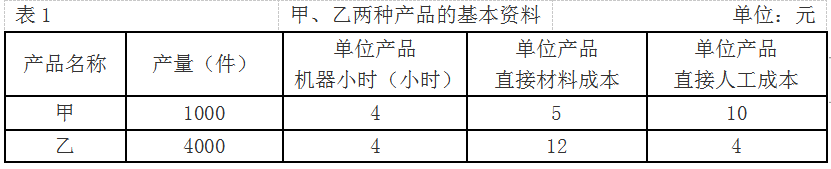 K企业专门从事甲、乙两种产品的生产,有关这两种产品的基本资料如表1所示。