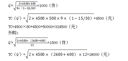(3)若不考虑缺货的影响,分别计算自制的经济生产批量和外购的经济订货批量,并通过计算分析企业应自制还是外购A标准件。