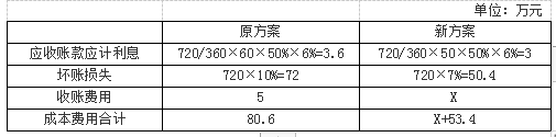 某公司的年赊销收入为720万元,平均收账期为60天,坏账损失为赊销额的10%,年收账费用为5万元。该公司认为通过增加收账人员等措施,可以使平均收账期降为50天,坏账损失降为赊销额的7%。假设公司的资本成本率为6%,变动成本率为50%。 要求:计算为使上述变更经济上合理,新增收账费用的上限(每年按360天计算)。