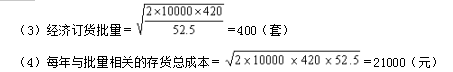 或者:每年与批量相关的存货总成本=400×52.5=21000(元)